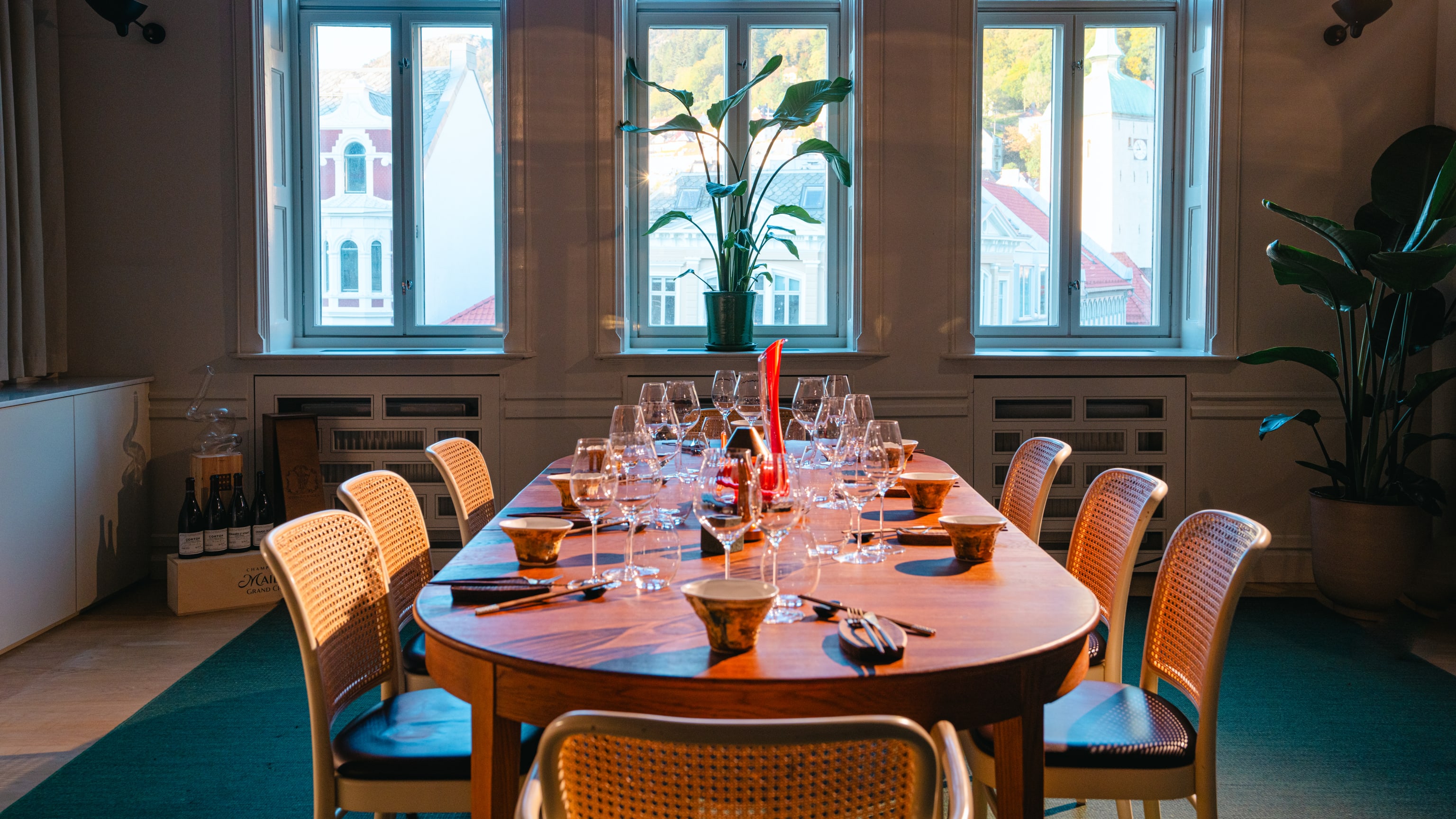 BARE Vin og Matbar is located on the top floor of Bergen Børs Hotel. BARE is the hotel's most exclusive restaurant and bar and is located in the beautiful Speilsalen hall. Its comprehensive wine cellar is a treasure trove for wine lovers and each bottle has been carefully selected from renowned producers from all over the world. You can find everything from rare vintages to well-known favourites that never go out of style. At BARE Vin og Matbar, you can choose between an à la carte menu served in the bar or book something very special with the chef's chambre séparée, where you can choose between a five, seven, or ten course meal comprising dishes recommended by the chef. The menu is seasonal with a focus on Norwegian ingredients.